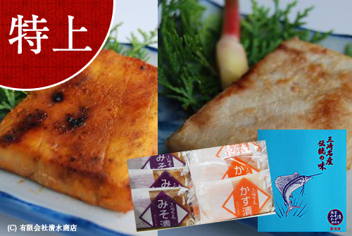当店一番人気のみそ漬と、かす漬の2種セット(特上) 【内容】 ◆みそ漬…5枚 ◆かす漬…5枚 品にはそれぞれ並・特上のランクがあります。